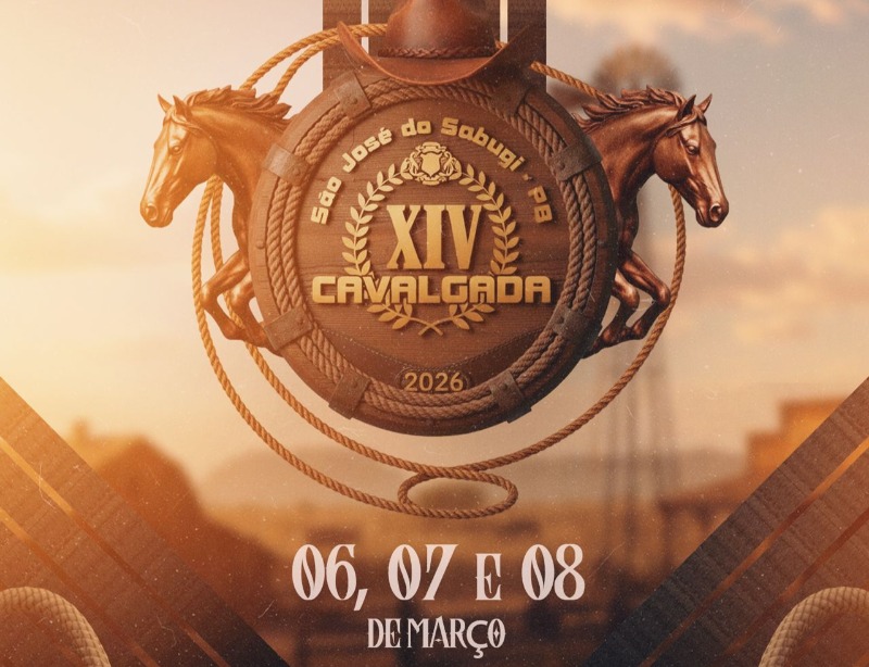 A Prefeitura de São José do Sabugi divulgou, nesta quarta-feira (28), as datas de realização da XIV Cavalgada 2026. O evento, que é considerado um dos mais tradicionais pela celebração da cultura nordestina no interior da Paraíba, vai acontecer de 6 a 8 de março.