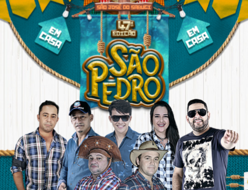 A Prefeitura de São José do Sabugi promove nesta sexta-feira (10) a programação do tradicional São Pedro. A edição 2020 do evento acontecerá de forma remota, a partir da transmissão de uma live, com artistas da cidade.A transmissão da live será apresentada pelos digitais influencers Josean Lucas e Valter Vinicius, a partir das 19h. Edvaldo, Arthur Morais, Kaylane, Nilson, Leandro Mendes, Forró do J e Thonny Lima são os artistas que estão confirmados na programação.